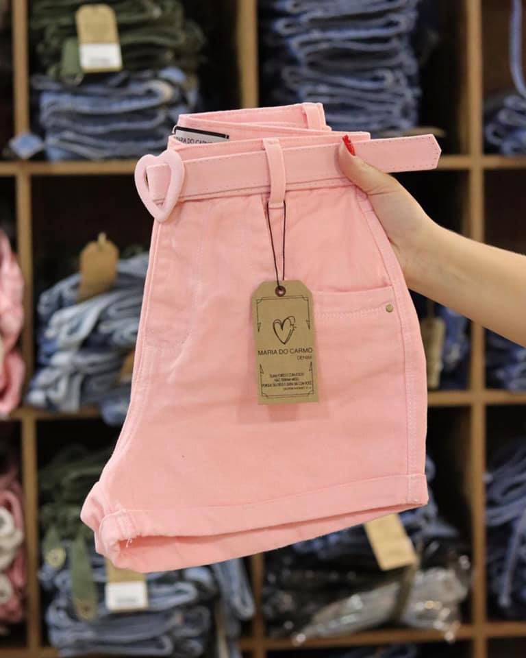 Short Mom Rosa, Jeans 100% acompanha o cinto .